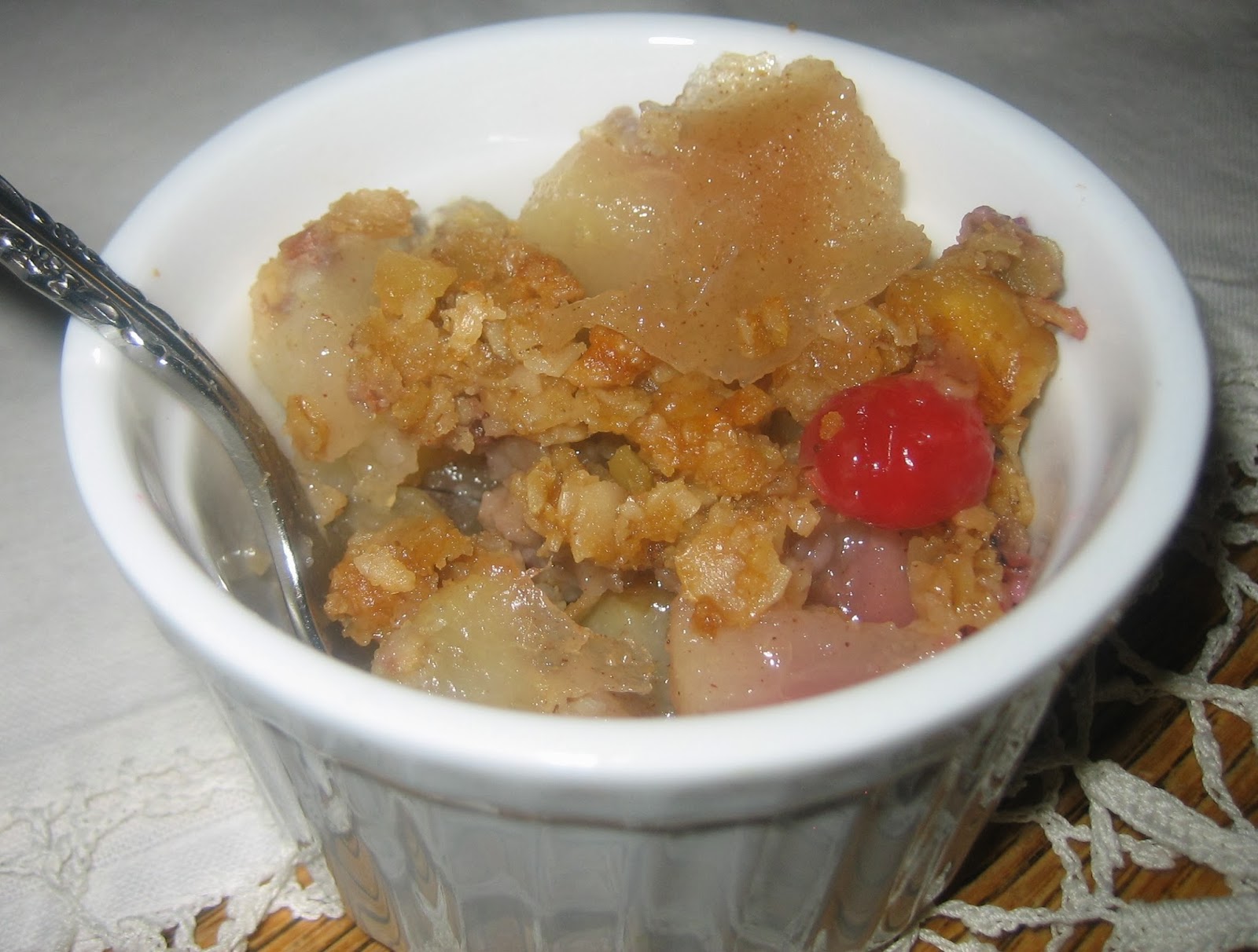 I am trying out a couple of new recipes before Thanksgiving Day arrives so I know which ones I want to make for the day. This one will certainly be on the menu! You might be wondering as you look at the photo if that cranberry really won't cause an obstruction. Well, it is so soft that it honestly could squeeze through a tube of toothpaste! But that's not what you will be thinking about when you eat this dessert. You will only be thinking how you can keep it to yourself. The combination of pears and cranberries is the perfect combination of sweet and tang. I have enjoyed it as a dessert many times this week, as you will see by the variety of photos.
